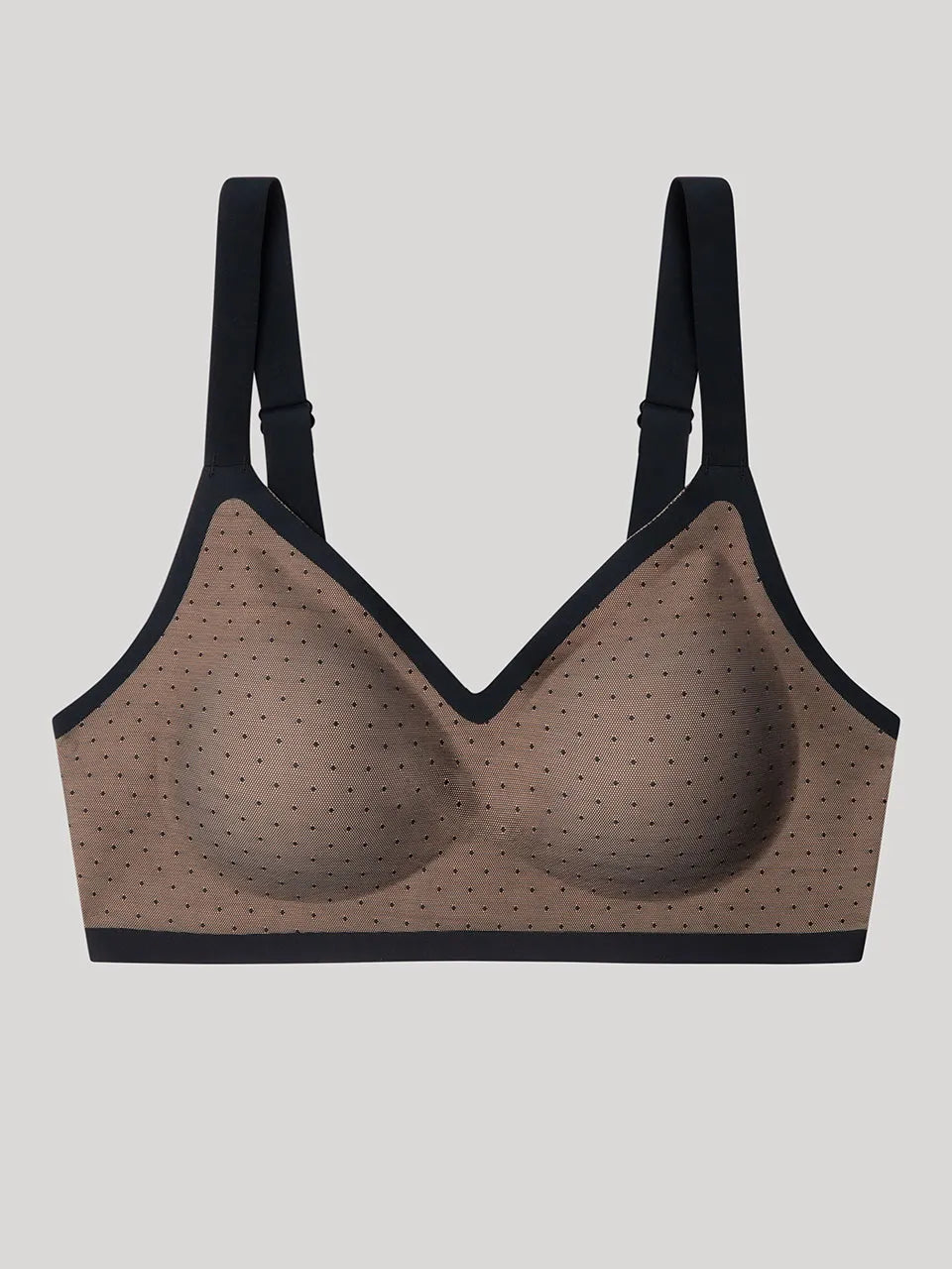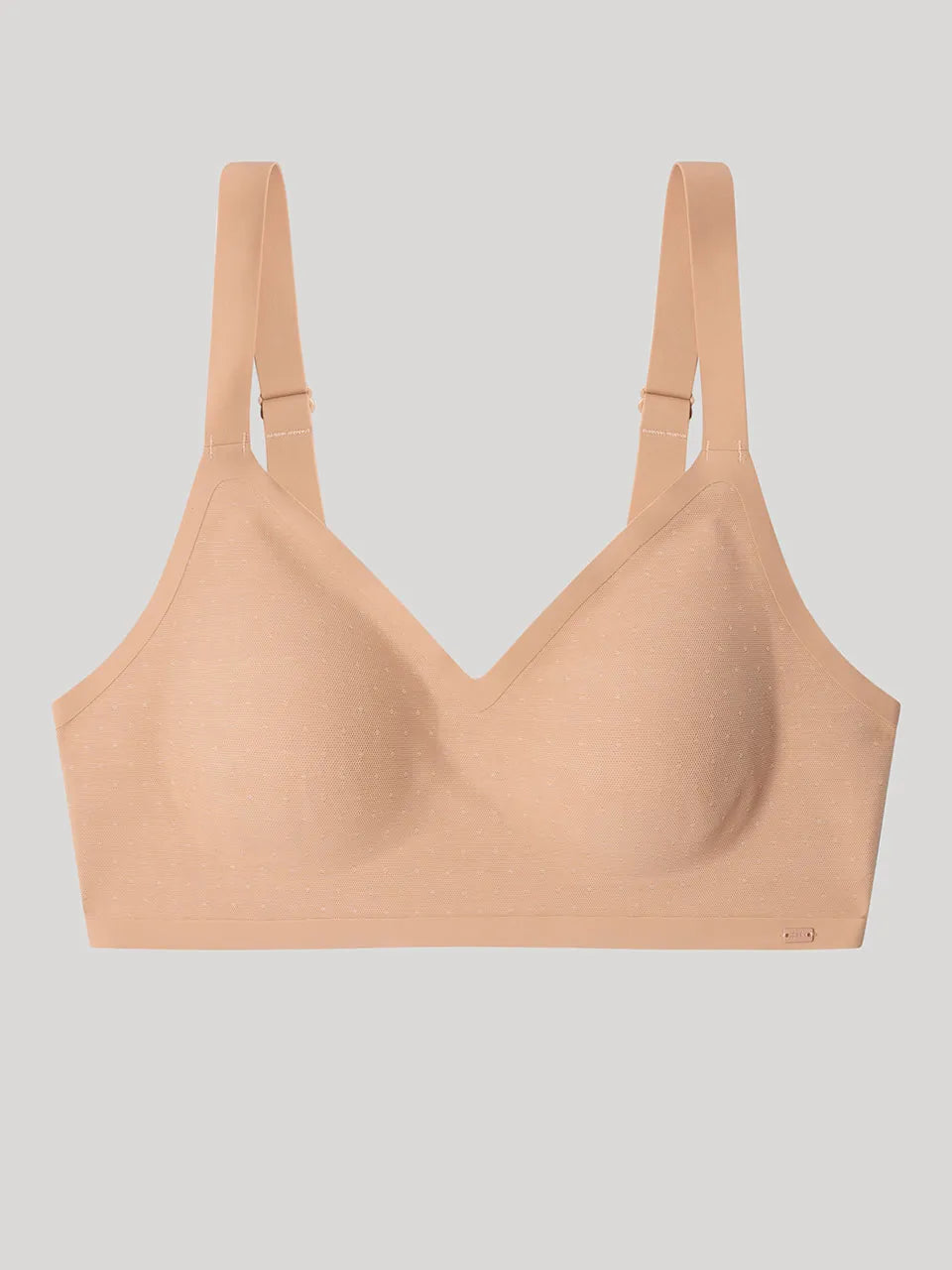 Sujetador capacidad sin aro y con copa extraíble para responder a las necesidades de cada momento. Tejido plumetti delicado y femenino, adherido a otro de microfibra que se adapta al cuerpo. Espalda anatómica para minimizar irregularidades. Acabados invisibles y termofusionados que no marcan, y garantizan una gran comodidad.